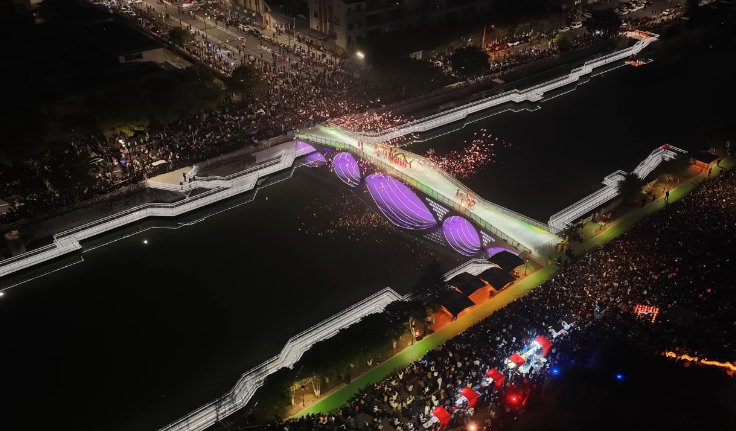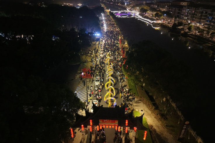 看“流光溢彩”的民俗景。华罗庚纪念馆广场上,文化惠民演出精彩纷呈,“将非遗与歌舞、民乐、戏曲等融合,生动展现了金坛非遗的匠心之美与民俗之韵。伴随着孩童们齐声高呼“亮灯啰”,千盏花灯次第绽放,映照出万家灯火的温暖图景。