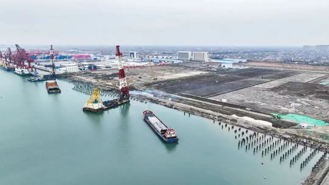 在西港区,起步港区12#、13#泊位桩基施工已全部完工,已启动码头上部结构以及堆场施工。两个泊位建成后将与已建的10#、11#泊位码头形成规模效应,进一步提高吕四作业区港口能级,口岸枢纽功能持续增强。