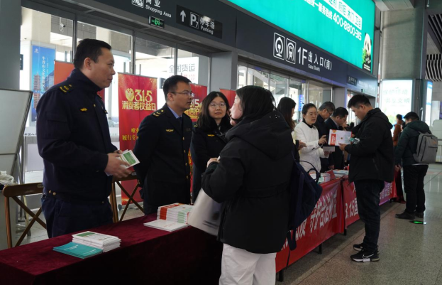 “3·15”国际消费者权益日来临之际,为切实维护国家利益和消费者利益,营造安全、放心的卷烟消费环境,南京市烟草专卖局四分局紧紧围绕“提升消费品质 守护合法权益”主题,联合多部门在南京南站开展联合普法宣传活动,不仅将普法宣传的阵地延伸到了人来人往的交通枢纽,更将服务的触角深入到了街头巷尾的店铺之中。参与宣传活动的工作人员不仅是烟草市场的管理者,更是普法宣传员、真假烟鉴别师和消费维权的“贴心人”,他们用实际行动在辖区内描绘出一幅“法润民心、权益共护”的生动画面。