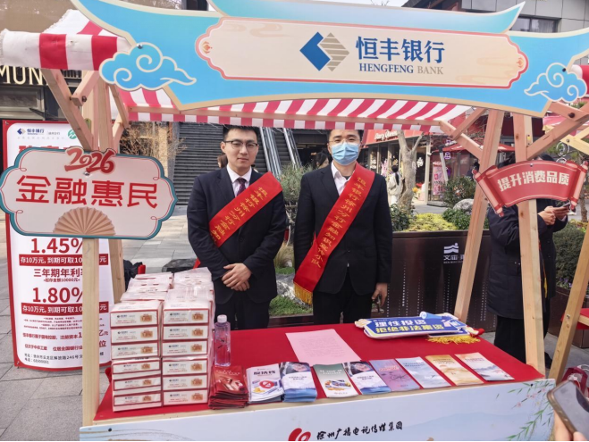 为深入践行“金融为民”初心,切实提升社会公众的金融素养和风险防范能力,3月10日下午,恒丰银行徐州分行积极响应监管部门号召,由行领导带队,组织骨干员工走进徐州市文庙街区,参加由徐州广播电视传媒集团主办的2026徐州市金融行业惠民大集,开展金融知识普及宣传活动,将专业、贴心的金融服务送到群众身边。