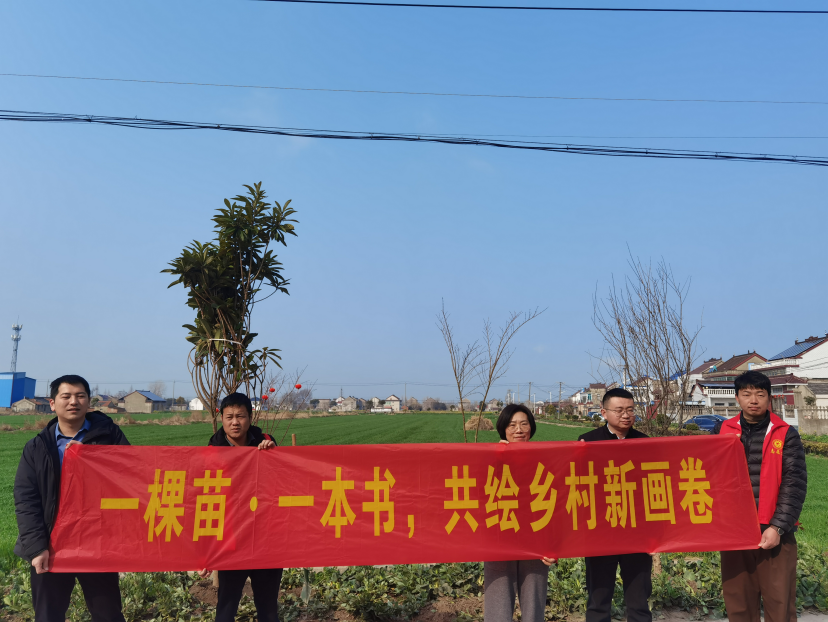 植绿伴读,墨润田野 —— 书香扎根春光里。春风催新绿,读书正当时。泰兴市古溪镇皂桥村以“一棵苗·一本书 共绘乡村新画卷”为主题,将绿色生态与书香文化深度融合,让植绿护绿与阅读品书在田间地头相遇。新的社会阶层人士与村民们携手并肩,挥锹挖坑、扶苗培土、浇水灌溉,在乡野间栽下一棵棵嫩绿的树苗,每栽下一棵树苗,便为其搭配一本生态科普、农技种植类书籍,挂上写有书籍名和读书寄语的书香挂牌。植树过后,大家围坐在新栽的树苗旁,共读生态保护美文,让墨香与草木清香在春风中交融。