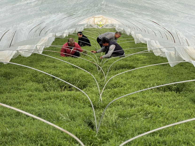 在淮安市淮阴区高家堰镇先锋村,108亩芦蒿大棚里绿意盎然,正值成熟上市期的芦蒿迎来采收销售旺季。村民们抢抓农时采收、分拣、打包,鲜嫩的芦蒿从田间地头源源不断运往江浙沪千家万户的餐桌,既为大家送上一抹“春天的鲜”,更以特色农业产业发展为抓手,激活乡村振兴内生动力。