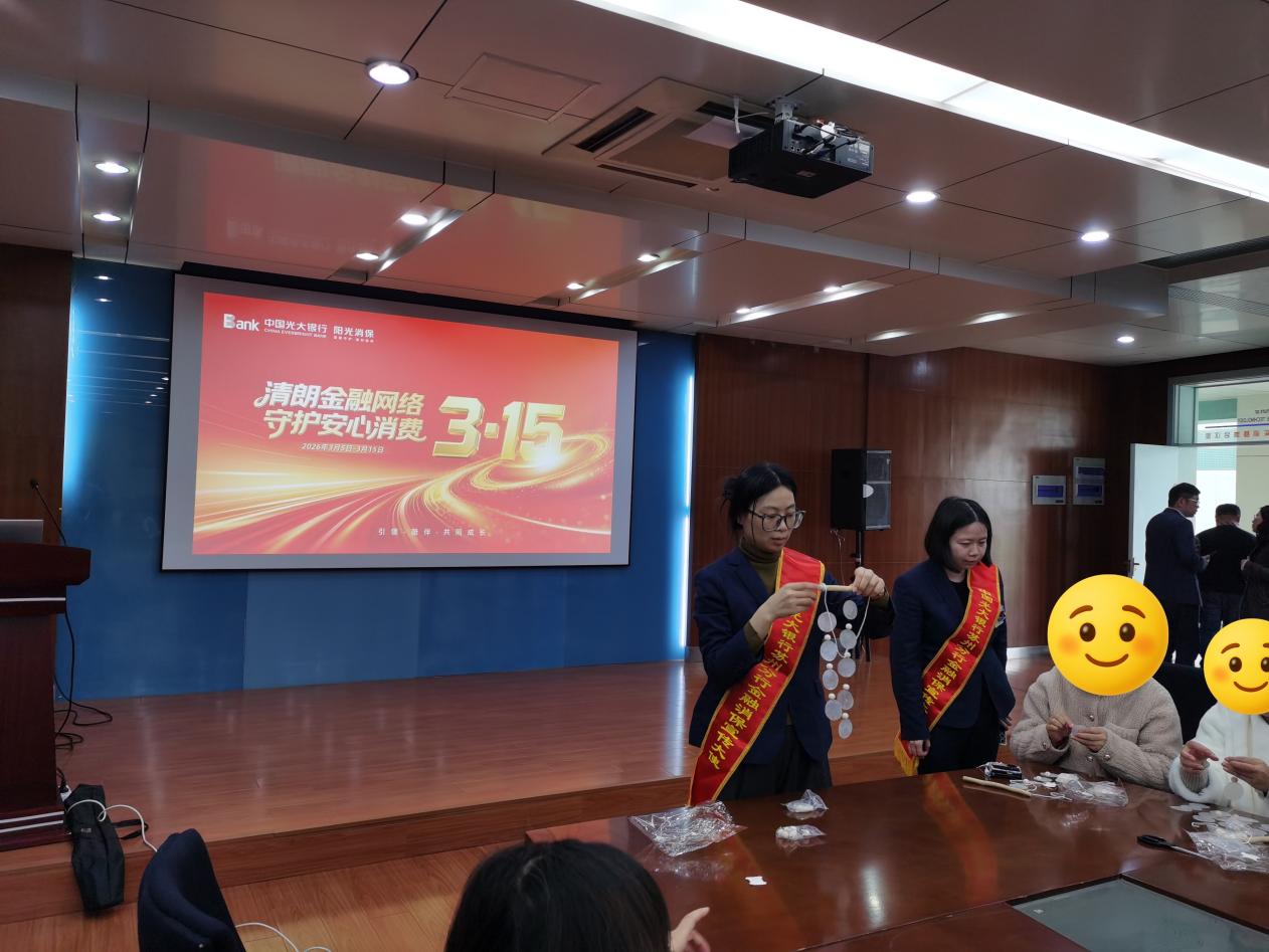 光大银行苏州滨河路支行走进高博软件学院开展“3·15金融知识进校园 护航师生金融成长”校园宣传活动,覆盖师生200余人,发放宣传品200余份。活动以“趣味互动+知识讲解”形式,通过手工活动调动热情,用通俗语言讲解个人信息保护、电信诈骗防范等知识,经案例分析和互动问答提升师生风险防范与自我保护能力,获师生一致好评。
