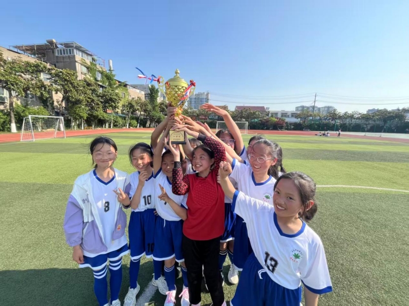“从基础的停传带射,到复杂的战术配合,我们不仅打磨球技,更注重培养队员的团队意识和抗压能力。”校足球教练陈井泉介绍,近年,学校在区级赛事中屡获佳绩,2024年包揽“区长杯”全部组别冠军,2025年实现区级足球联赛女子组成功卫冕、男子组斩获亚军。