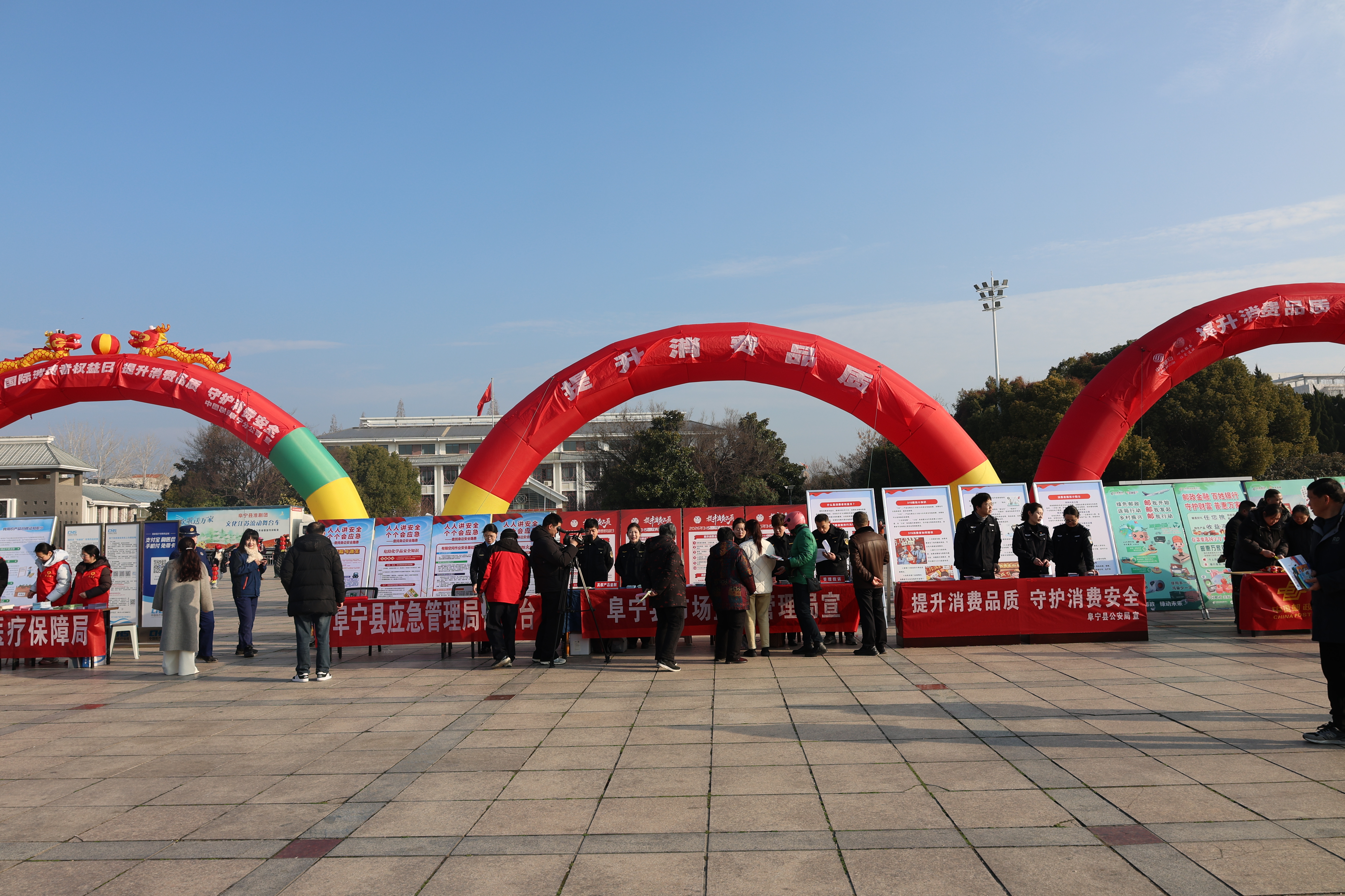 3月14日上午,阜宁县市场监管局联合县公安局、县住建局、县农业农村局等20余家单位,在县城铁军广场举行以“提升消费品质”为主题的现场宣传咨询维权活动。