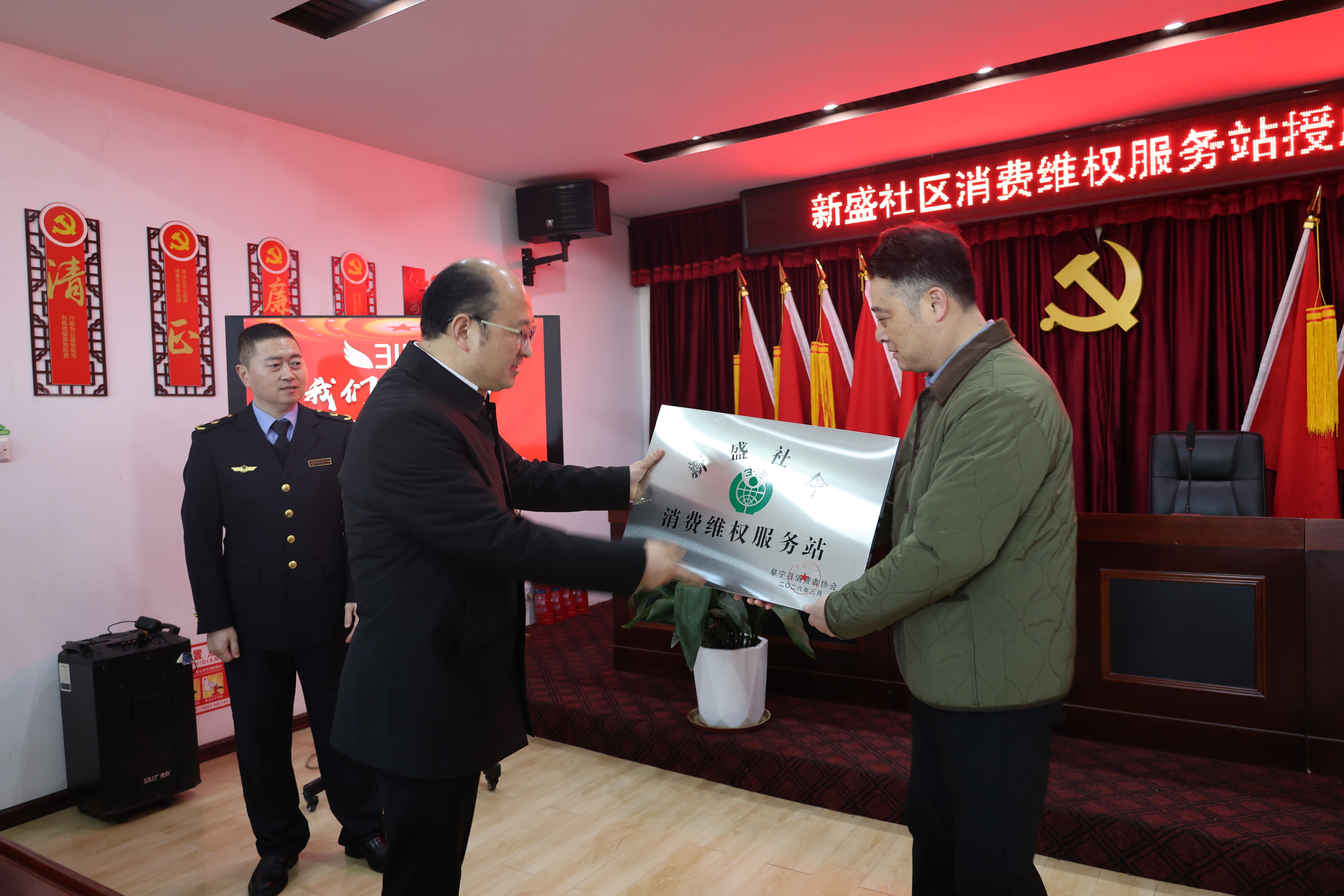 3月14日上午,阜宁县市场监管局联合阜城街道新盛社区,正式挂牌成立新盛社区消费维权服务站,让社区群众在家门口就能享受便捷高效的维权服务。该维权站是该局自2025年推广“12315+社区”维权模式以来设立的第3个社区消费维权服务站。维权站主要承担消费咨询、纠纷调解、维权引导、普法宣传等职能。社区群众遇到消费侵权问题,可直接到社区维权站咨询投诉,简单纠纷当场调解,复杂纠纷由维权站联动属地市场监管分局快速处置。