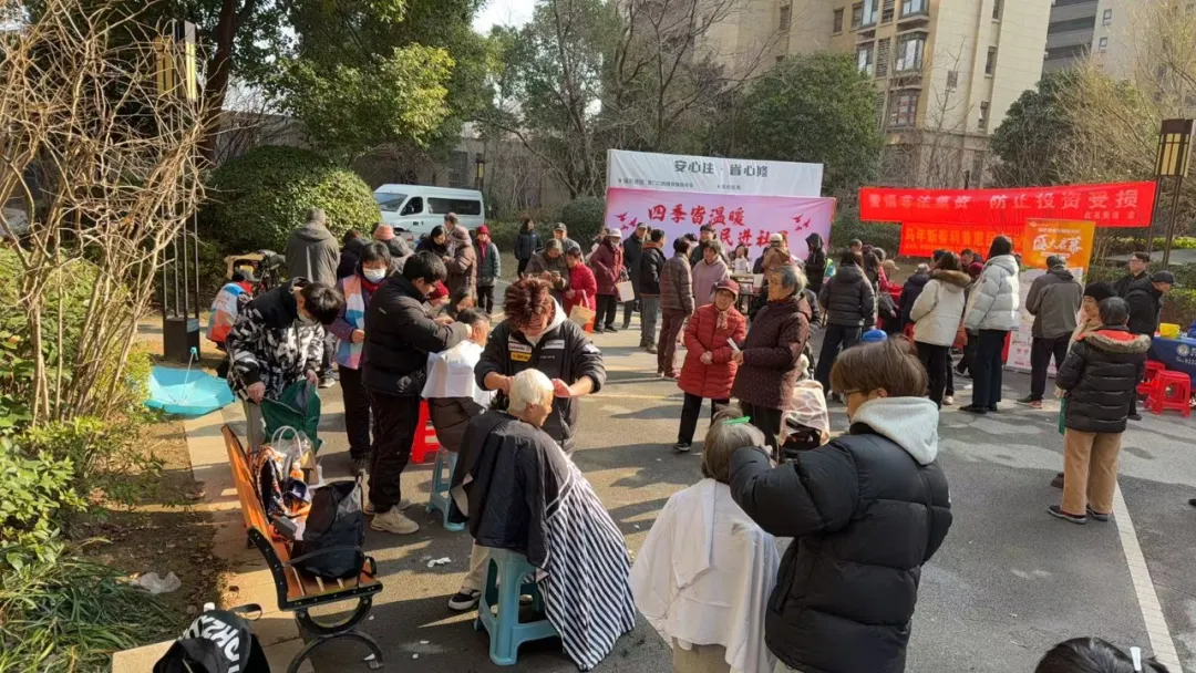 丙午马年新春,街道以“睦邻亲·商圈旺”为主线,在保利堂悦广场、复地二期广场多点开设“便民服务大集”。磨刀、修伞、小家电维修等生活服务,摊位前预约名额常被“秒光”,专业理发师为长者爱心义剪,健康义诊、公证咨询、养老政策解答等点位前人流不断。