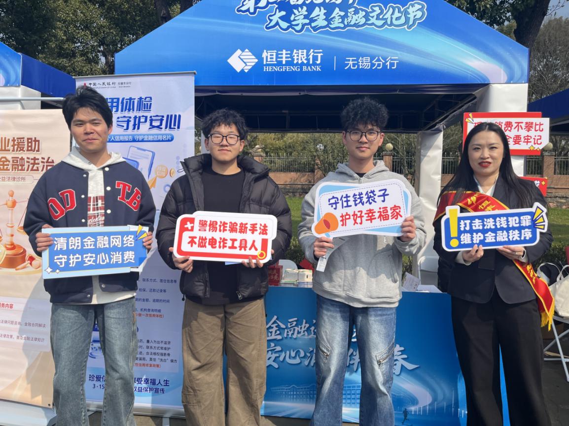人间三月,春暖花开,金融清风与青春气息一同吹进无锡太湖学院。近日,“清朗金融进校园安心消费伴青春”第二届无锡市大学生金融文化节正式启幕,恒丰银行无锡分行作为主要参与机构之一,积极融入“监管引领、高校支撑、机构赋能、媒体监督”的多方联动平台,以丰富多元的宣教形式,助力提升在锡高校大学生金融素养,筑牢校园金融安全防线。