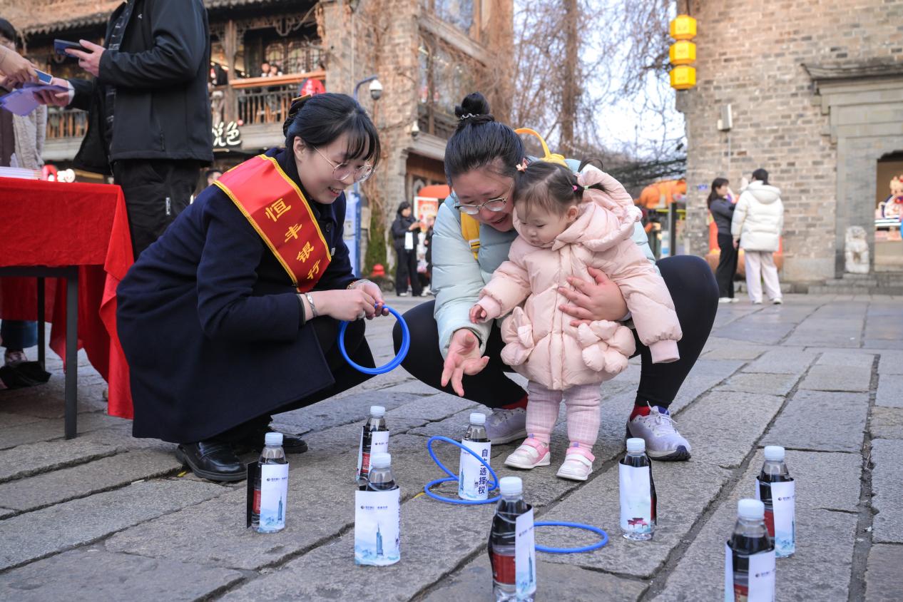 各站点以传统游戏为载体,将金融知识融入互动体验:八项权益维权站的套圈游戏,让参与者在瞄准“财产安全权”“知情权”等标识桩时,系统学习消费者八项基本权利;金融法治平安站的转转盘游戏,将反洗钱、防范非法集资、法治知识融入问答,帮助公众明辨是非、远离陷阱;电信诈骗防范站的古风投壶游戏,让参与者在投壶射箭中挑战反诈知识问答,深入了解冒充公检法、刷单返利等常见骗局套路。