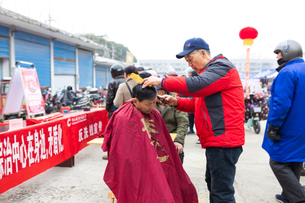 “社区的服务太贴心啦,我很满意!”张大爷看着自己的新发型对理发师竖起了大拇指。