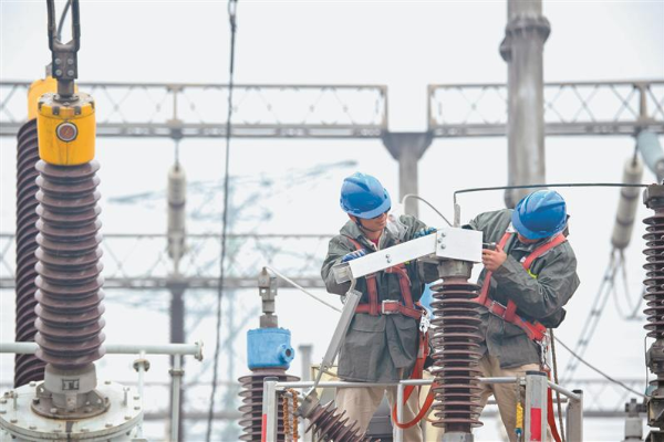 3月16日,江阴220千伏南运变电站内,工作人员冒雨检修2号主变110千伏侧接地闸刀。当日,国网无锡供电公司组织人员对220千伏南运变电站的开关、闸刀、电流互感器等进行检修,标志着2026年无锡电网春季检修工作全面有序展开。此次春检将对全市范围内重要变电站、输电线路等电力设施进行检修、维护、更换,提升设备健康运行水平,全力确保企业用电需求和电网安全可靠运行。(潘正光 摄)