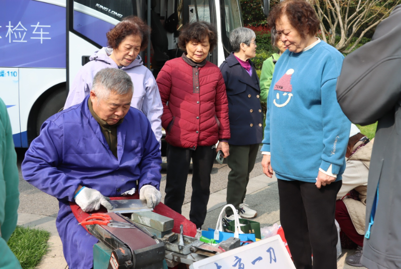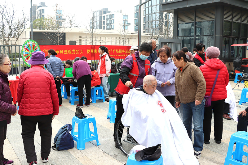 活动现场,人声鼎沸、暖意融融,各项服务有序铺开。网格便民服务区域,人气高涨。磨刀、修伞、修鞋、缝纫、理发等传统项目前早早排起了长队,经验丰富的师傅们拿出看家本领,手法娴熟、动作麻利。理发区尤其热闹,中国传统讲究龙抬头理发,新年好彩头。随着剪刀“咔嚓”起落,理发师们为居民修剪出清爽利落的发型,不少老人笑着夸赞“手艺地道,剪得精神”;接过磨得锃亮的刀具、修复如新的伞具,居民们脸上洋溢起满意的笑容。老师傅们的精湛技艺,不仅解决了居民们生活中的琐碎难题,更让老旧物品重焕生机,让传统手艺的魅力在春日里格外动人。