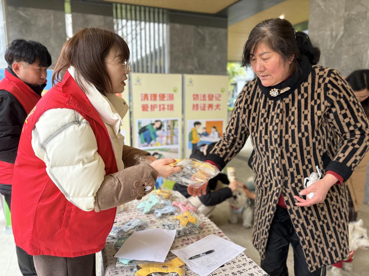 宣导“暖”行,以知识传递点亮文明之光。活动伊始,志愿者们热情地向过往居民发放《文明养宠倡议书》、宣传单页及文明养犬行为规范,辖区网格员用生动的语言和实例,向居民们传递文明养宠的重要性。“以前对养犬的具体法律法规不太了解,今天过来学到了不少知识,也明白了文明养犬对邻里和谐的重要性。”带着爱犬前来参与的陈先生深有感触地说。