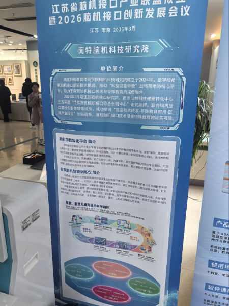 此次活动分为现场路演和产品展示两个环节。在现场路演环节,6家科技助残企业依次登台,围绕孤独症康复训练、早期筛查、沟通干预等痛点,展示各自创新成果:南特脑机科技研究院推出“南特脑科学数智化平台”及“桥语脑机沟通赋能系统”,通过脑机接口与行为干预技术,精准提升孤独症儿童的沟通与社交能力。南京怡享康健科技有限公司带来“音小圈音乐资源平台”“孤独症数字智能化评估与教学平台”及系列特需儿童教学辅具,实现评估与教学的智能匹配。南京微关爱应用行为分析研究院展示“发展障碍儿童康复赋能AI平台”,整合在线视频标注与人工智能技术,提供一站式早期筛查与康复服务。南京左右脑医疗科技集团发布“脑电峰频率系统”,利用静息态脑电技术实现6—36月龄幼儿孤独症辅助诊断。南京悦界智脑科技有限公司推出“整合康复新技术(CMIR)”,以非药物、非介入方式帮助儿童进行大脑功能修复与行为改善。强脑云枢(南京)科技有限公司展示“开星果脑机接口社交沟通训练系统”“专注欣注意力训练系统”及“脑控赛车”互动设备,通过神经反馈训练提升儿童社交与注意力。在产品展示区,18家企业同步展出前沿的助残科技产品,产品涵盖助安、助康、助视、助听、助行5个领域,吸引与会嘉宾和康复机构代表驻足体验、交流洽谈。
