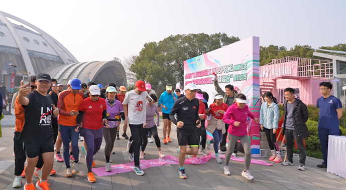 中国石化江苏石油集结50人的爱跑跑团从金陵 STYLE 浪漫中心 Jun Space 运动驿站出发,往返全程约7公里,尽享玄武湖水韵风光,全力以赴奔向终点。