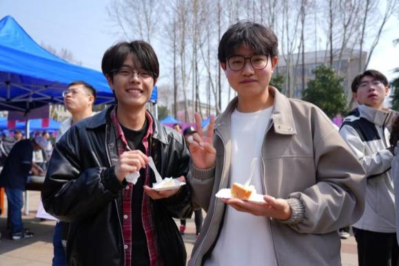现场最受欢迎的“二月兰主题蛋糕”秀上,校领导们共同执刀切分祝福,将这份专属甜蜜免费分享给师生与游客。学校以美食为媒,回应多元需求,厚植校园幸福感,将校园之美、饮食之韵与和平之愿融于一炉,让“为理而来”的春日之约成为共同的温暖记忆。