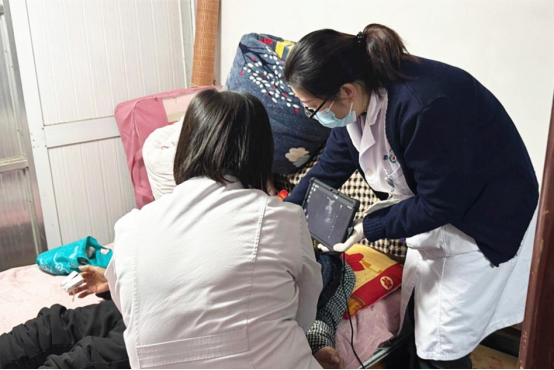 在医疗服务方面,黄埭镇不断整合医疗资源,常态化开展上门体检、健康宣教、养老帮扶等便民服务。为切实解决百岁老人出行就医不便的难题,黄埭镇联合医院定期开展百岁老人上门体检便民服务活动。从基础的血压、血糖、心率测量,到心肺功能听诊、腹部B超、心电图检测,每一项检查都细致入微。医护人员还结合老人高龄生理特点,重点排查慢性病并发症、心脑血管等高发健康隐患,针对老人的身体状况提供个性化健康指导,向老人家属详细讲解养生知识,示范正确的护理手法,解答日常照料中的疑问。