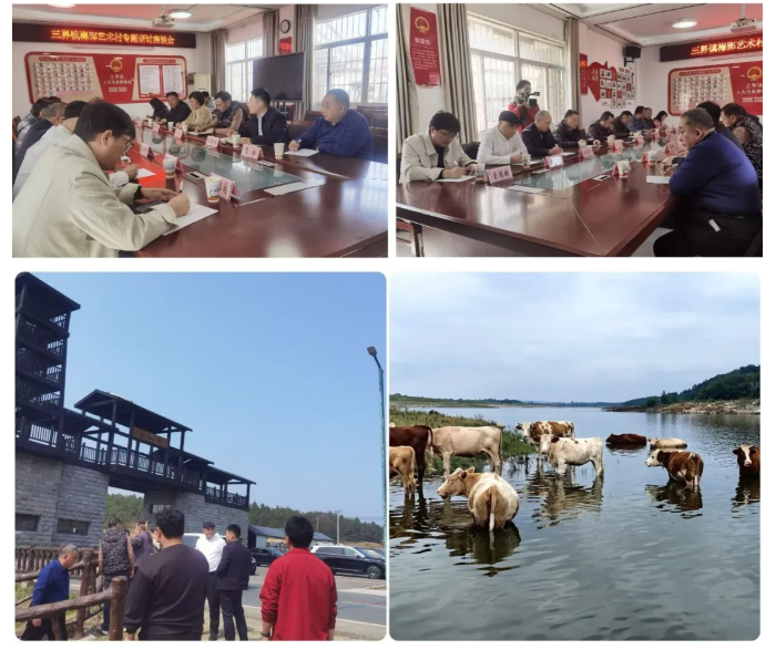 大家首先参观了三界外艺术研究院,对沉浮老师扎根三界村15年艺术创作,把默默无闻又独具魅力的村庄,通过绘画展现到世界各地的情怀感到敬佩。走在梅郢艺术村、静岗营地、跃龙湖水库、黄寨牧场等处,大家被大自然设计出来的三界村所感染,对这里的山水湖泊、丘陵地貌惊叹不已。