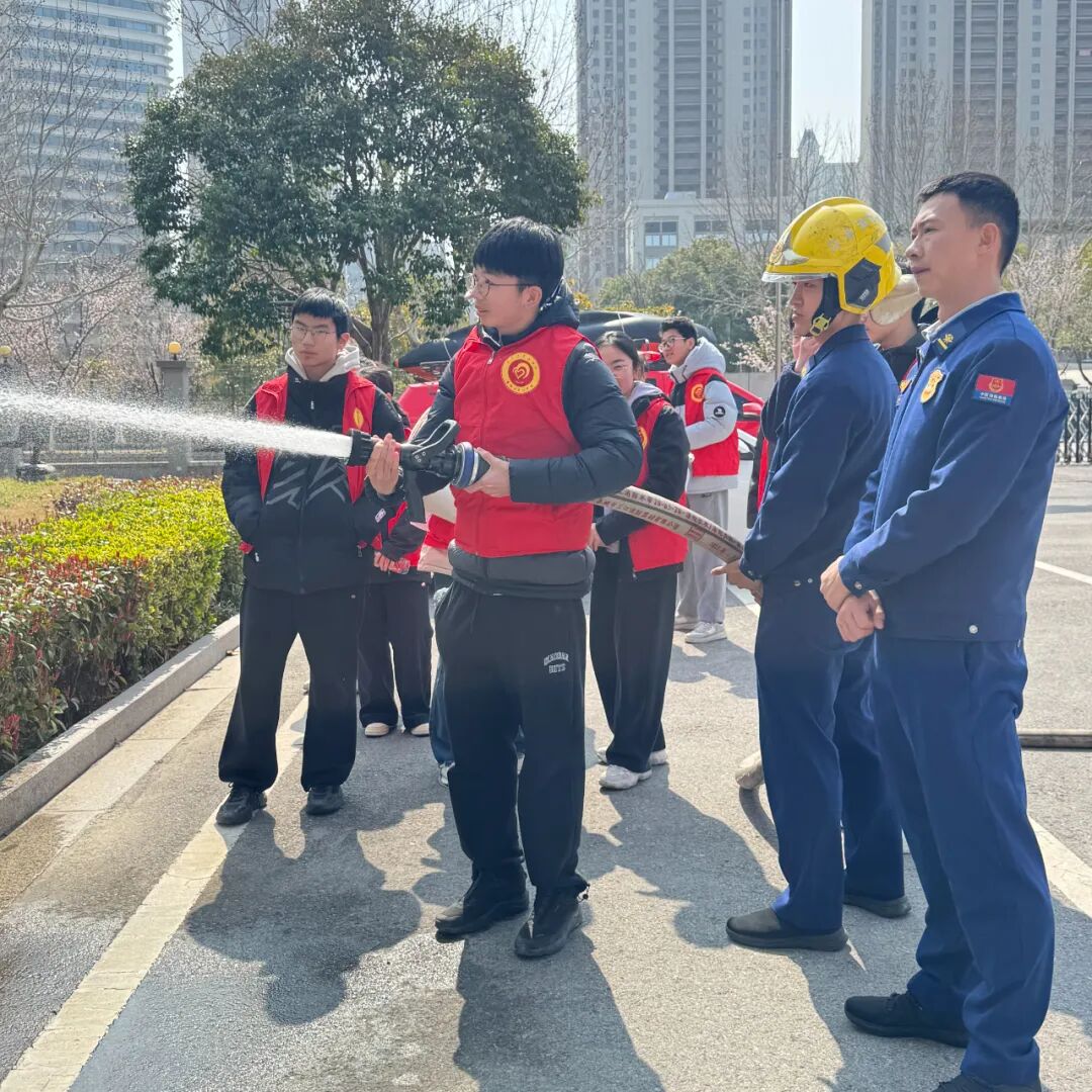 随后,盐都区消防救援大队消防队员带领盐城市一中师生近距离参观了多类消防车,详细讲解了消防车的构造、功能及随车救援装备的用途,从高压水枪、破拆工具到空气呼吸器、急救设备,每一件装备的功能与使用场景都被细致解读,让同学们直观感受到了消防救援工作的专业与严谨。在消防队员的专业指导下,同学们体验了消防水带的连接与使用,感受到了消防装备的重量与力量;当大家穿上厚重的消防服,真切体会到消防员们每次出警时身着“战衣”的负重前行,也更深刻地理解了这份职业背后的责任与坚守。沉浸式的消防研学体验,不仅让盐城市一中同学们近距离感受了消防职业的艰辛与伟大,学会了系统、实用的消防安全知识,掌握了基础的消防实操技能,更让大家肩负起了消防安全“宣传员”“践行者”的使命。