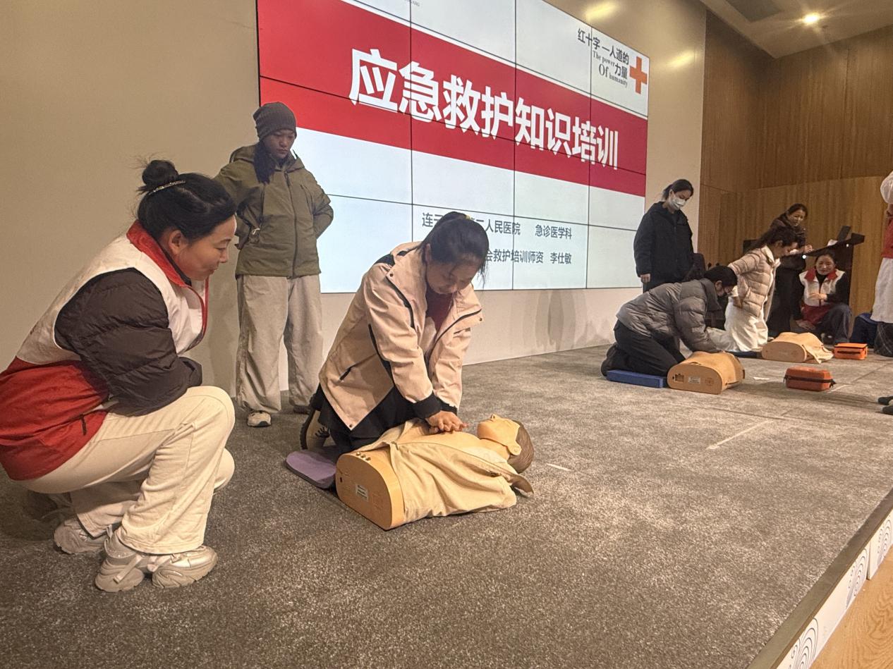 活动现场,海州区红十字会专业救护师资率先开展系统性理论培训,紧扣职工工作生活常见突发情况,结合真实案例,细致讲解心肺复苏(CPR)、海姆立克急救法、外伤包扎、突发晕厥处置等实用技能,重点普及“黄金4分钟”急救理念,纠正日常急救误区。讲师现场互动答疑,让晦涩的急救知识变得通俗易懂,确保职工听得懂、记得住。