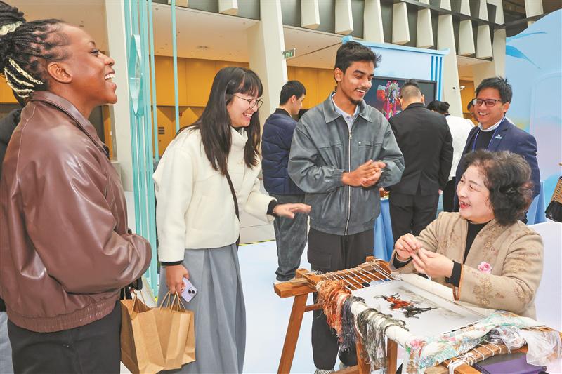 25日,参加2026无锡“国际月”暨国际赏樱周的外国友人在非遗技艺展和公益集市上,近距离感受非遗技艺展示和传统手工作品,深入了解江南传统文化的精髓。(朱吉鹏 摄)