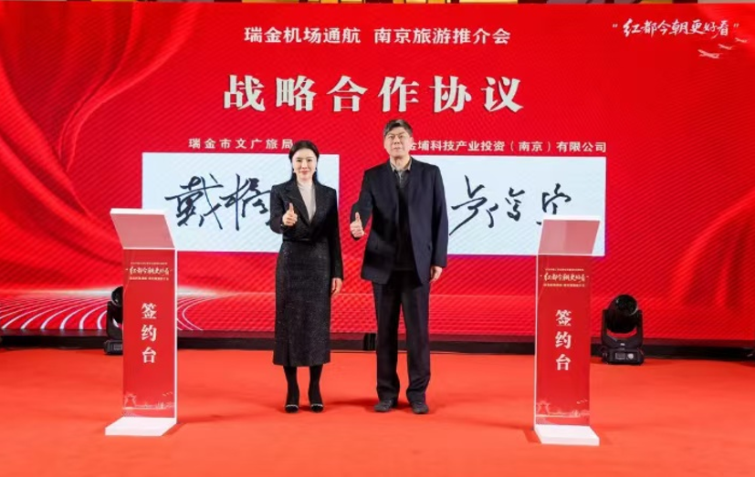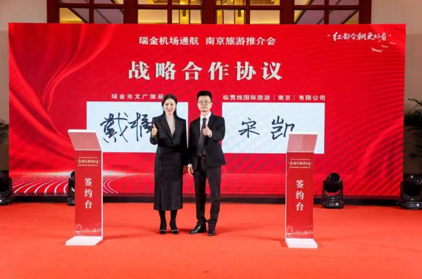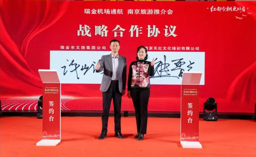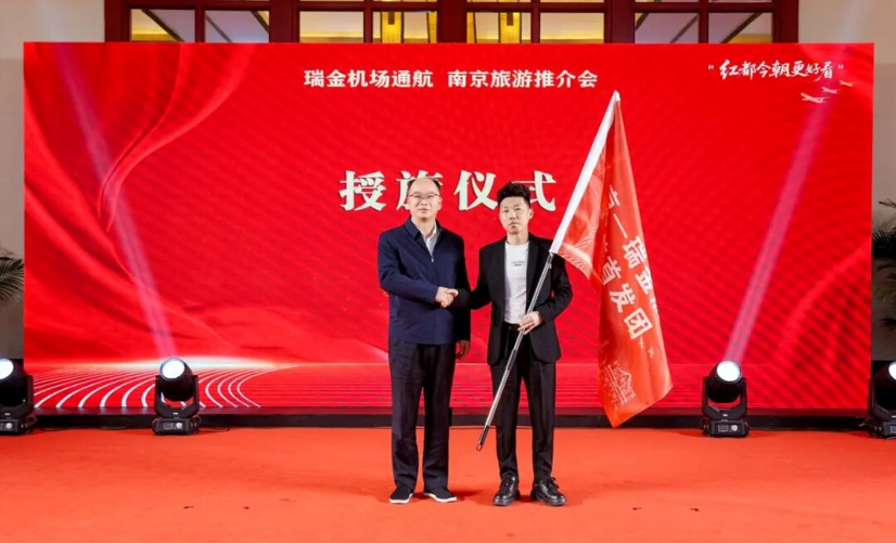 推介会上,刘春林为“南京赴瑞金航空旅游首发团”授旗,谢江溪围绕瑞金红色资源、红培研学线路及“航空团”奖励政策作专题推介。现场还举行了瑞金航空旅游线路产品推介、文旅合作签约仪式。
