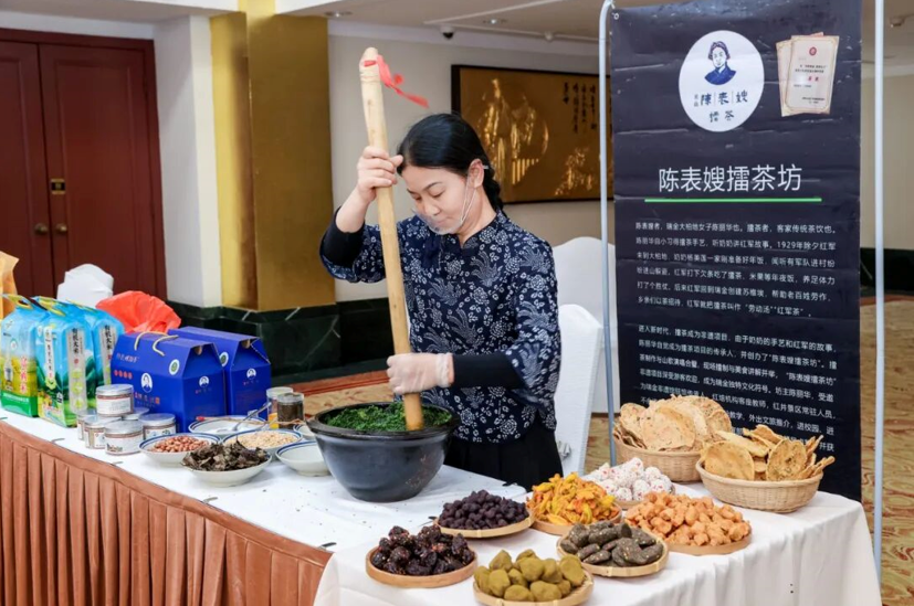 活动期间,瑞金特色文艺展演精彩纷呈。《瑞金旅游宣传片》播放了红色故都的厚重历史,客家歌舞《斑鸠调》、情景朗诵《一生守望》、《瑞金瑞京·向光而行》剧目、国家级非物质文化遗产赣南采茶戏《刘二与媒婆》等文艺节目相继上演,生动展现了瑞金的红色文化与客家风情,演出中还进行了三轮瑞金景区门票大礼包抽奖环节。场外同步设置了瑞金农特产品摊位,廖奶奶咸鸭蛋、客家擂茶、瑞金文创等特色产品集中展示,吸引众多与会嘉宾驻足品鉴。(邓诗怡)