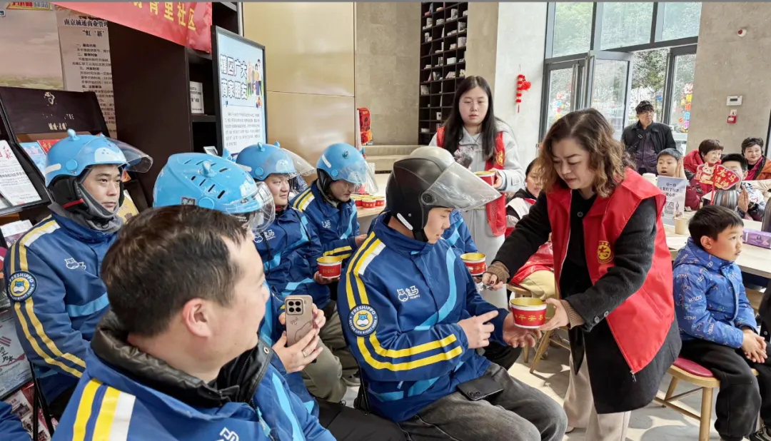家园情,共绘同“新”圆。元宵佳节,由秦虹街道团工委、扇骨里社区“伙伴领航站”联合主办的“此心安处·暖城聚光”主题关爱活动温馨举行,快递员、外卖员代表与社区青少年共度团圆佳节。在“我的城市故事”分享环节,两位小哥分享了他们在秦淮的青春奋斗故事,表达了对城市的认同与热爱。他们纷纷表示愿以志愿服务反哺社区,争当“社区主人”。3月5日,“学雷锋 做志愿”主题活动在邻里中心广场火热开展,现场依托“家门口”就业服务站,为新就业群体精准对接岗位资源,文艺汇演与健康义诊同步进行,志愿者们为小哥测量血压、送上关怀。