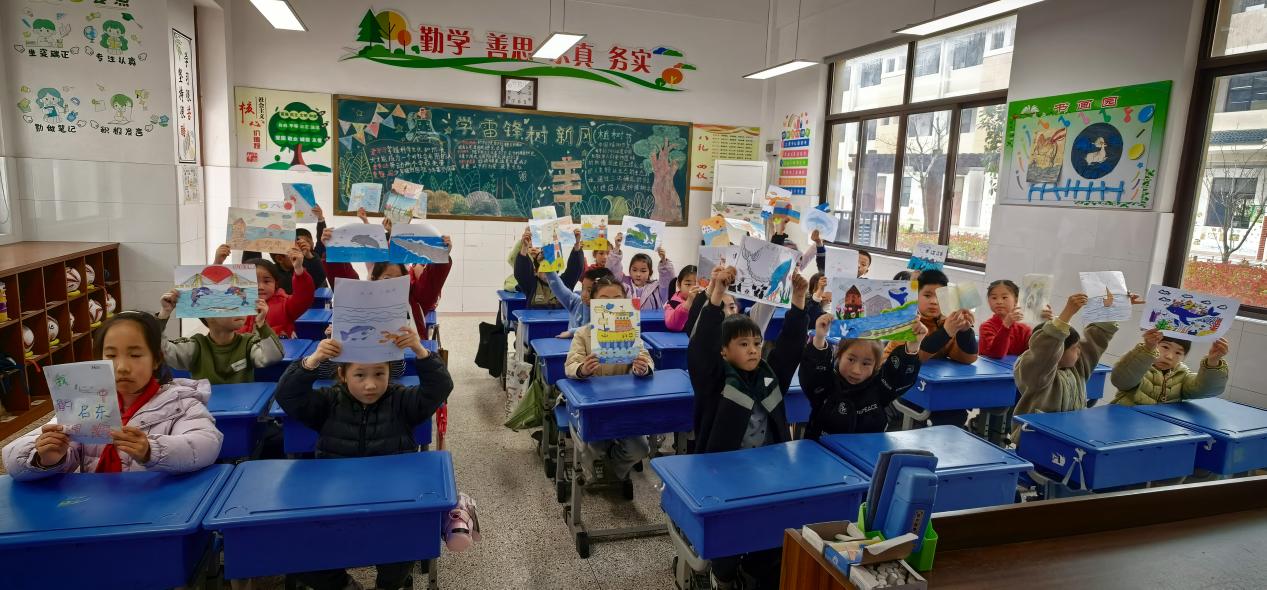 低年级的“江海小画册”童趣盎然,一笔一画描绘着江豚、海浪和挡浪墙;中年级的“江海资源调查表”图文并茂,记录下餐桌上的“江海滋味”和长辈口中的“江海用处”;高年级同学则化身“探究小达人”,围绕“吕四渔场”“水利工程”等课题撰写的微报告,逻辑清晰、思考深入,展现了未来主人翁的责任与担当。同学们自信地分享自己的作品,讲述背后的故事,用童心与智慧,描绘出他们心中“江海与城市共生”的美好蓝图。