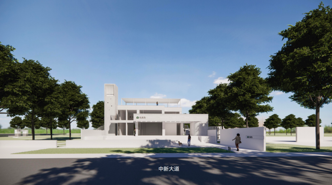 全新门店整体以简约纯净的白色建筑为主,搭配开阔的户外外摆区域与大片草坪,一眼望去清新又治愈。