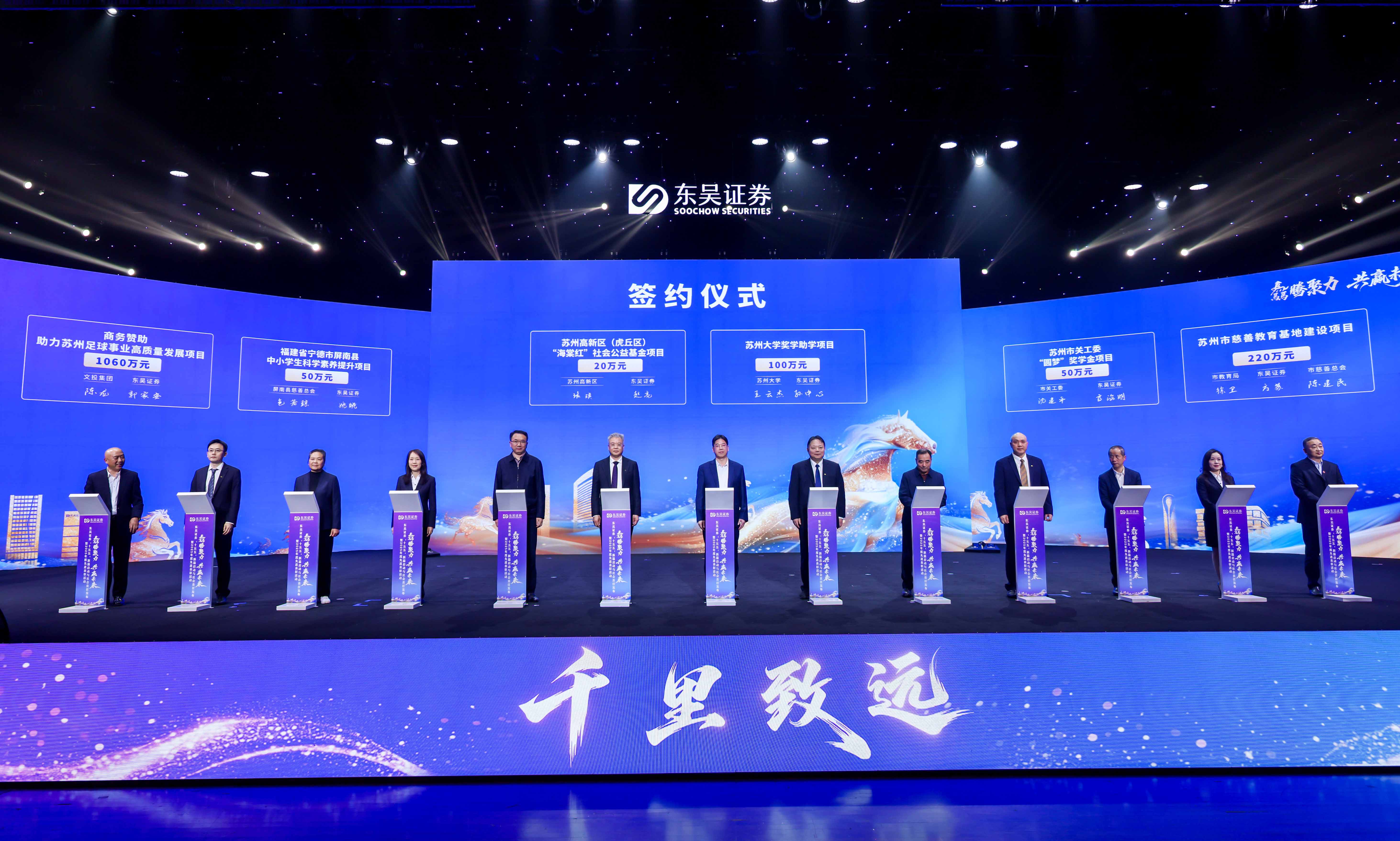 3月28日,东吴证券在苏州广电总台举办“骉腾聚力 共赢未来——‘十五五’新篇启动与社会责任发布暨2025年度先进表彰活动”,立足2025年取得的成绩,回望“十四五”收官成果,展望“十五五”壮阔征程。现场,一批2026年度社会公益慈善及赞助项目集中签约。