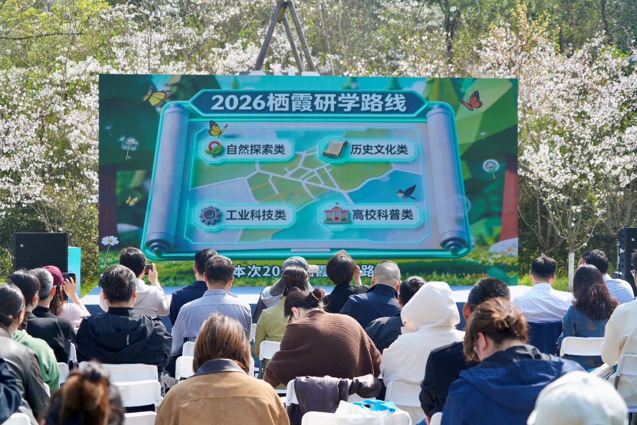 3月29日,由南京市栖霞区文化和旅游局主办的“2026栖霞区研学路线发布活动”在栖霞山营地(大自然邮局)举办。现场推出四大主题研学路线,2026栖霞区研学路线正式启动发布。