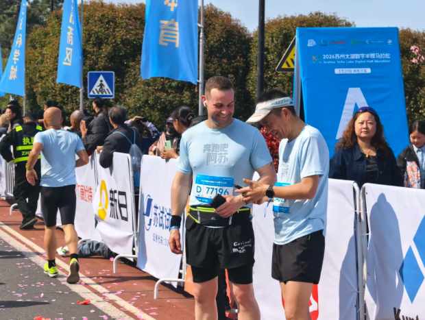 第六次来苏州的他,对这座兼具江南温婉与现代活力的城市心生喜爱。“中国有太多人喜欢跑步了,路边的加油声给了我很多力量。”