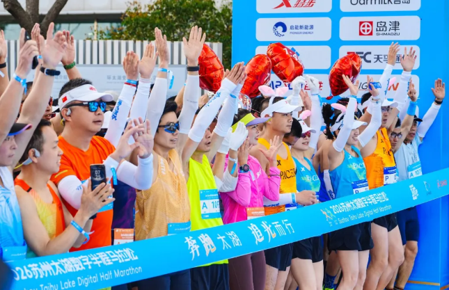 今天,这位爱上中国跑步氛围的丹麦人,如约站上了苏州太湖数字半程马拉松的起点。