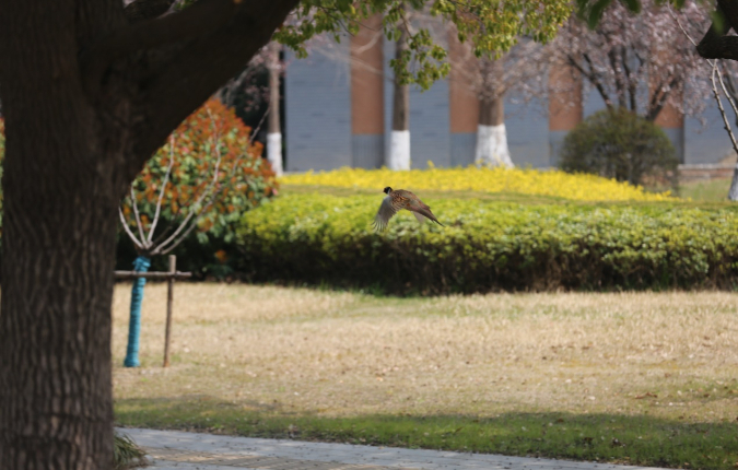 环颈雉在校园的出现,也为盐城师范学院长期深耕生态文明建设写下注脚。