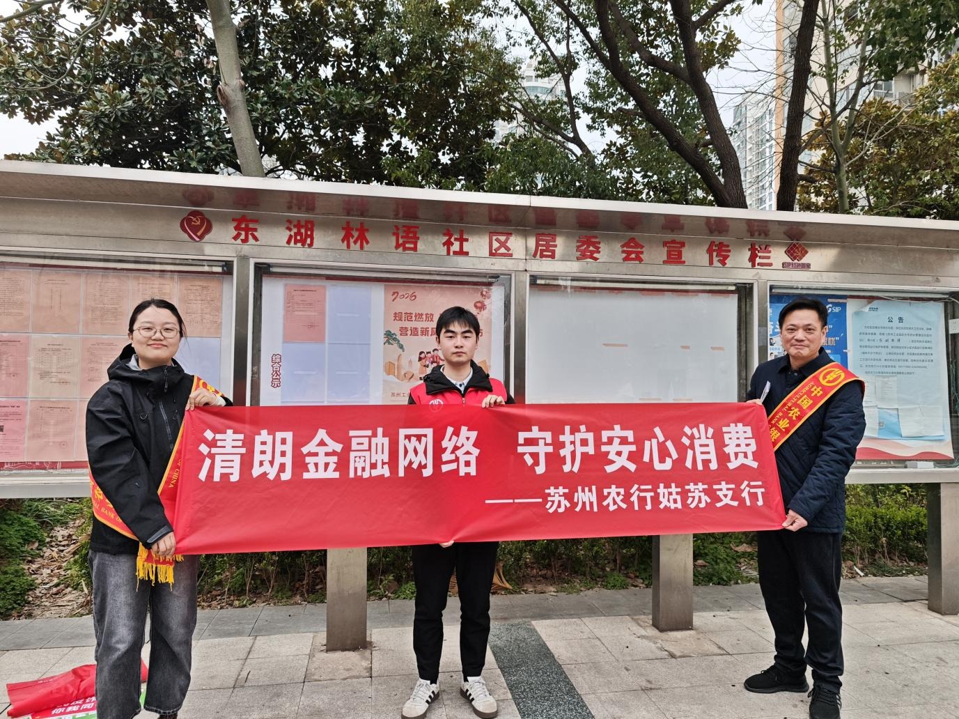 近期,江苏农行苏州姑苏支行紧扣“清朗金融网络,守护安心消费”主题,组织全行力量,开展了一系列形式多样、贴近民生的金融消费者权益保护教育宣传活动,帮助金融消费者提升风险防范意识,筑牢财产安全防线。