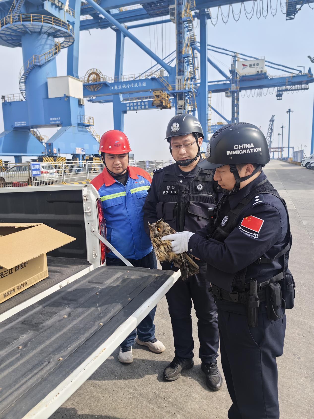 3月28日下午,盐城出入境边防检查站执勤三队民警在大丰港一期码头例行巡逻时,发现一只外形像猫头鹰的动物停在马路中央,疑似受伤,如不及时救助,随时有被过往车辆碾压的危险。该站民警迅速将其送往大丰港动物园进行先行保护,并同步移交给大丰区自然资源和规划局工作人员作进一步救治处理。