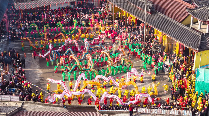 上午八时许,九条长龙从四面八方汇聚至广场。群龙飞舞,金鳞翻涌,鞭炮齐鸣,硝烟与欢腾一同升腾,将春日的村庄点燃。腰鼓铿锵、舞狮腾跃、打莲湘轻快灵动,各支表演队各展绝活,引得数以千计的市民与游客连连叫好。