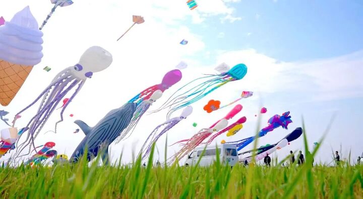 精彩活动:风筝市集、亲子风筝汇、巨型风筝展演、非遗DIY、打卡集章、草地“瘫”痪大赛、爆米花DIY、草坪K歌、养生操、淮剧杂技等