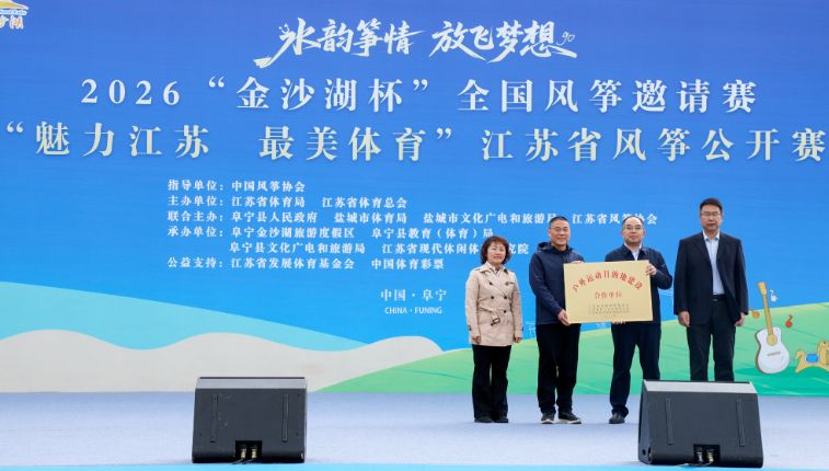 开幕式上,龙狮欢腾、鼓乐齐鸣,民俗表演与风筝展演交相辉映,尽显江淮水乡活力与魅力。江苏省发展体育基金会、省职工文化体育协会、省现代休闲体育研究院共同为金沙湖旅游度假区授予“户外运动目的地建设合作单位”牌匾。