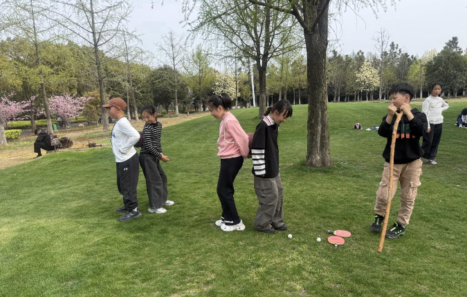 踏青途中,大家来到公园开阔的草坪区域,开展了充满欢乐与挑战的趣味运动。“背靠背运排球”游戏中,搭档们紧密配合,背靠背肩并肩,将球稳稳夹在中间,小心翼翼却又步履飞快地冲刺终点,既锻炼了默契与平衡感,也增进了彼此的感情。随后是“两人三组”绑腿跑,大家喊着整齐的口号,在步调一致中体验并肩前行的乐趣,草坪上不时传来阵阵欢笑声,每一个瞬间都充满了温情与欢乐。