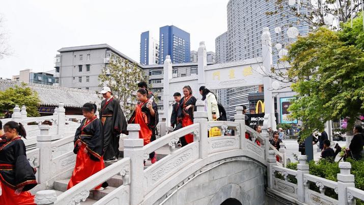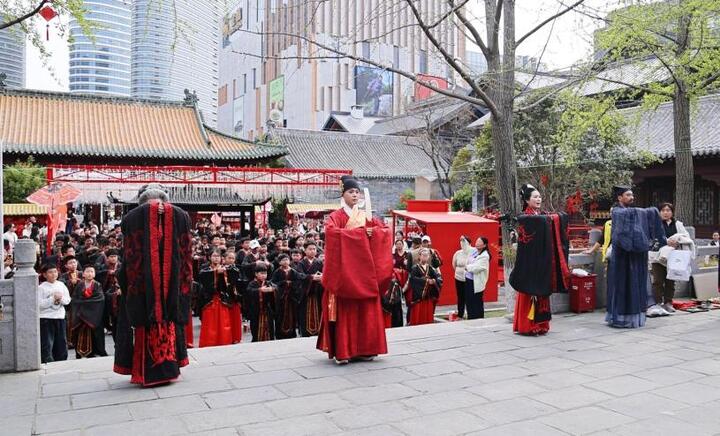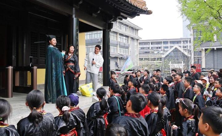 “束脩之礼,铭记于心;尊师重道,付诸于行……”4月2日午后,徐州文庙大成殿前,数百名来自盐城的少年身着汉服,在古乐声中体验拜孔仪式。这是文庙开街以来首次举办的大规模研学活动。恰逢江苏省首个春假,作为鼓楼区“串门研学”首场活动,这场融合文化传承与自然探索的研学之旅,让来自盐城的近千名师生满载而归。