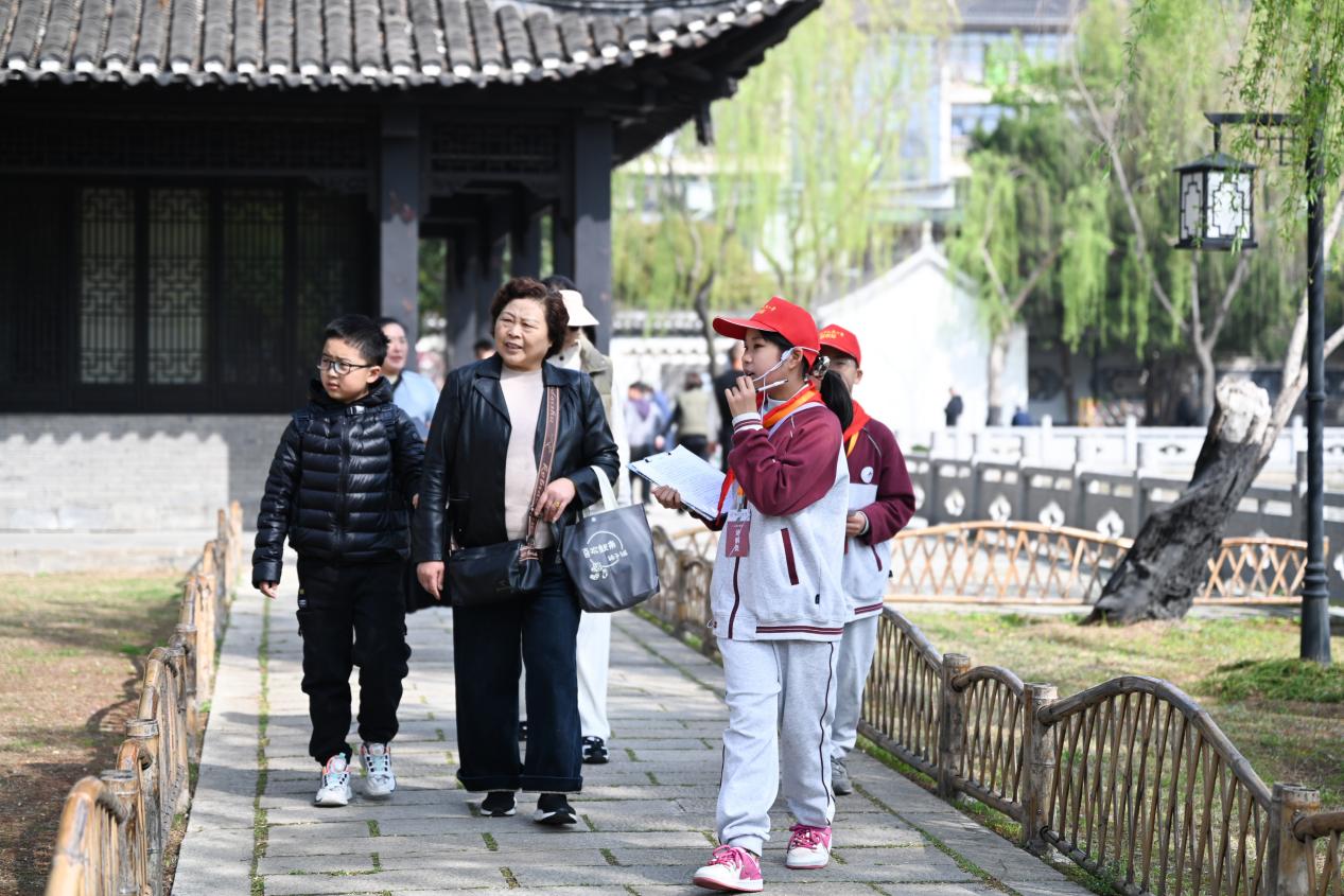 从园林入口到深处庭院,小讲解员们的身影穿梭在亭台楼阁之间,稚嫩的脸庞、认真的模样、生动的讲解,让整个清晏园都充满了朝气。他们没有刻板的话术,而是用少年独有的视角和语气讲述历史,面对游客的提问也能从容应答,既展现了人民小学少先队员的良好风貌,也让游客们在游览的同时,真正读懂了古园背后的文化底蕴。