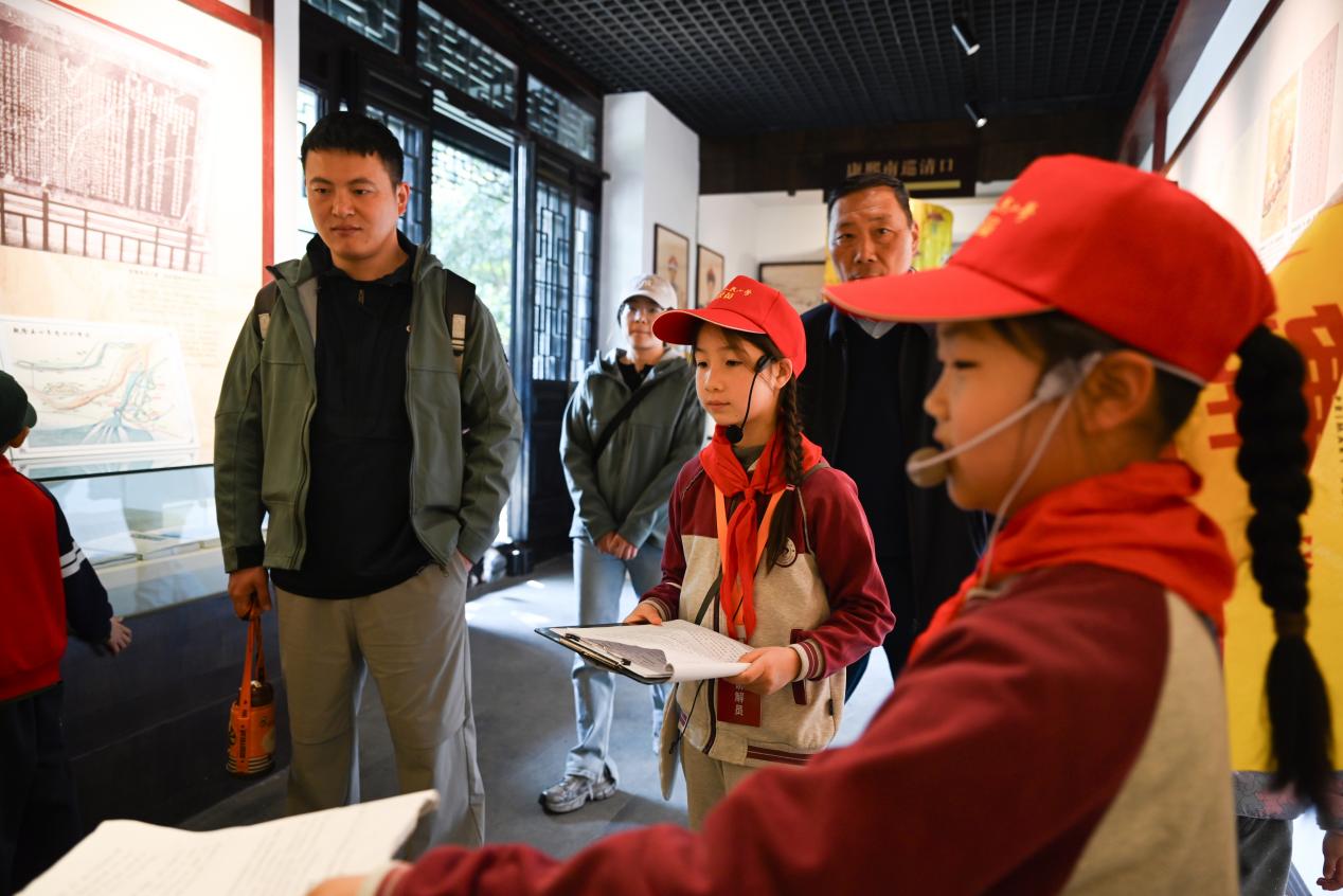 清晏园是中国治水史、漕运史上唯一保存完好的衙署园林,这里的一亭一榭、一砖一石,都镌刻着淮安的岁月故事,也承载着大运河畔的人文底蕴。阳光下的小小讲解员们,身着统一服装、佩戴鲜艳红领巾,用稚嫩而坚定的声音,讲述着“河清海晏”的历史寓意、历任河道总督的治水功绩,以及淮安与大运河的深厚渊源。