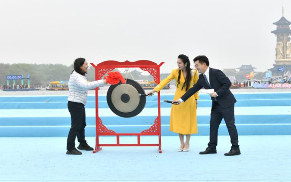 泰州市委书记姜冬冬为竹篙挂红,宣布溱潼会船节开篙。姜堰区委书记孙靓靓向八方宾朋送上来自溱湖的美好祝福,诚邀全国各地游客共同感受这场独具特色的水上祈福盛会。现场游客也纷纷在祈福红绸上写下心愿,为发展祈愿、为家人祝福。