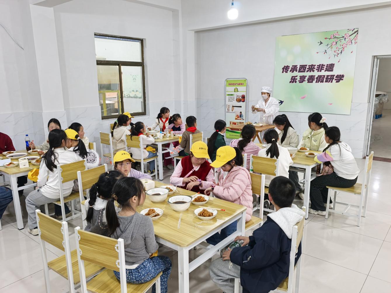 “别小看这一片姜,从选姜、切片到酱渍,每一步都有讲究……”走进酱菜制作工坊,浓郁的酱香扑面而来。孩子们好奇地打量着一个个大缸,聆听传承人讲述西来生姜片的故事,了解从选材、清洗、切片到酱渍、发酵的完整工艺,感受其中蕴含的生活智慧。在传承人的指导下,孩子们亲手体验酱渍工序,将姜片装入小罐,密封保存。“原来小小生姜片的制作要经过这么多道工序。”郑湙尧小朋友小心翼翼地捧着自己亲手制作的生姜片,惊叹不已。