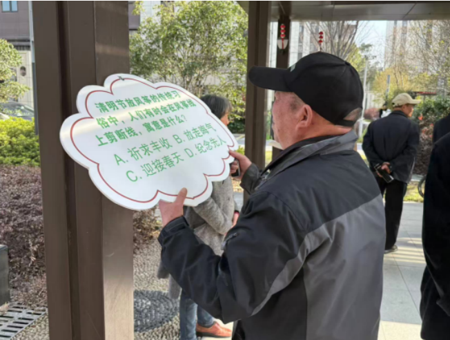 绿色健步同行,引领文明风尚。太平社区将缅怀先人的传统内涵与绿色文明的现代理念相融合,以群众性活动为载体,推动移风易俗深入人心。活动设置“绿色清明·文明同行”健步走环节,居民沿路线前行,沿途打卡完成知识问答与趣味任务,在锻炼身体的同时增进对文明祭扫知识的了解。在“文明祭祀我先行”签名墙前,居民纷纷签名承诺,表示将用鲜花祭祀、网络祭扫等低碳环保方式寄托哀思。社区工作人员同步发放《文明祭扫倡议书》,倡导绿色、文明、安全的祭扫新风尚,让文明理念在邻里互动中悄然传递。(柳青)