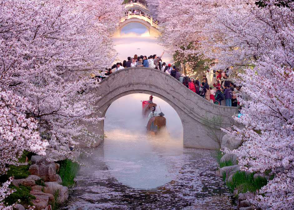 鲜花小镇举办的国风花朝节,以“穿越式”体验演绎春日浪漫,揽客1.5万人次。烂漫的樱花与郁金香花海成为绝佳背景,汉服巡游、纸鸢放飞、非遗体验等互动活动,让游客沉浸式感受春日浪漫与传统文化魅力。孩子们身着汉服,在花海中嬉戏,仿佛完成了一场古今穿越的春日雅集。