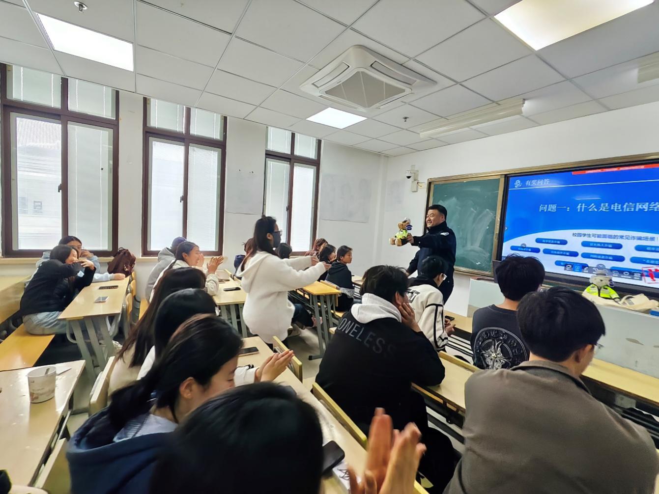 讲座中,反诈民警结合校园贷、兼职刷单、游戏交易等学生群体中易发高发诈骗类型,通过情景模拟、以案说法、互动竞答等形式,向在场师生拆解诈骗套路,传授“不听、不信、不转账”的防骗口诀。现场还举办“反诈排位赛”活动,通过扫码参与知识竞答,大家踊跃参与,反响热烈。