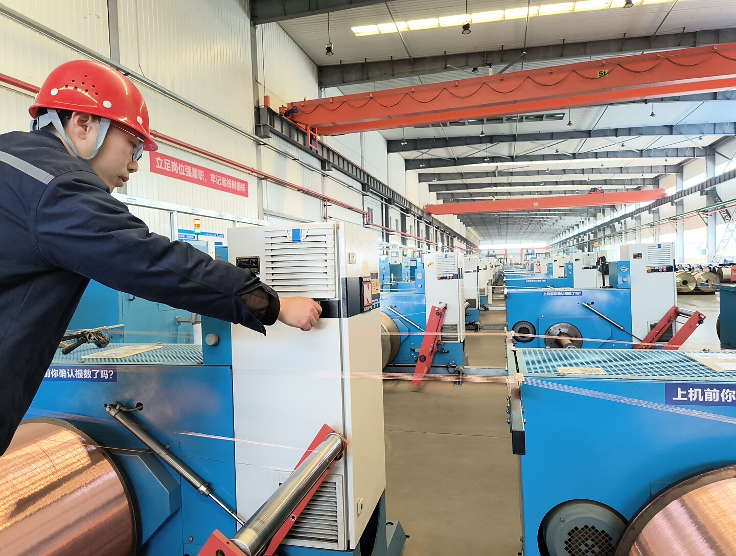 载重30余吨的货运车辆在厂区装卸区域往来穿梭,每日进出的原材料及产品运输车辆达80余辆。正月初五,当不少人仍处于节日假期,国家级绿色工厂江东合金技术有限公司150名员工已全部到岗投入生产。省级智能车间内,智能化束丝机、多头拉丝机、连铸连轧机高效运转,奏响提质增效、稳产高产的奋进序曲。2025年,江东合金实现应税销售175亿元。今年随着高端装备用精密铜合金线材项目投产,企业依托自主研发、聚焦国产化替代的高精度高性能铜合金线材持续斩获新订单。公司常务副总经理闫晨表示,二期项目10余台设备正加紧调试,将于6月份投产运行。